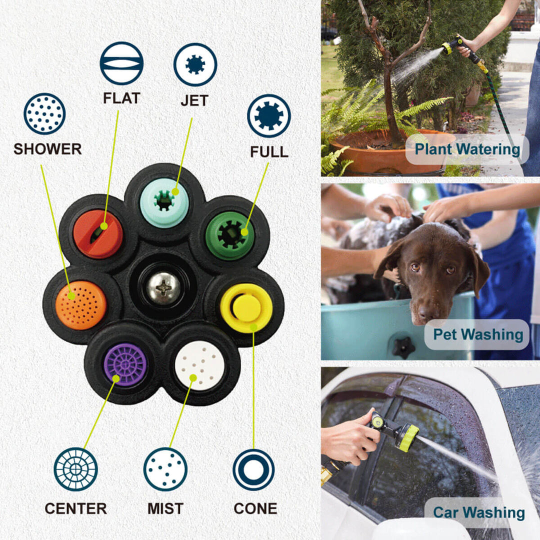 Exclusive colorful floral-shaped knob design with 7 pre-set watering patterns