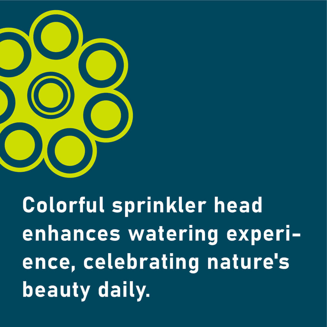 Colorful sprinkler head enhances watering experience, celebrating nature's beauty daily.